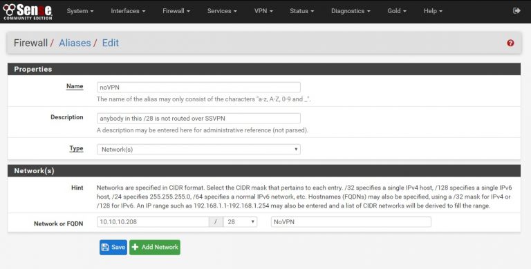 This screenshot shows the creation of an alias. This is what makes it so your work computer at 10.10.10.209 doesn’t go out the SSVPN but acts like any other computer going right out your Internet line where your ISP can see and watch everything… or if you just wanna watch Netflix.
