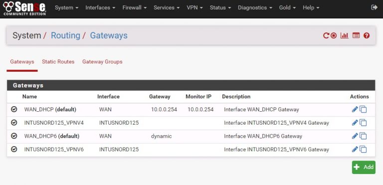 Once each interface is shaped, you can create the Gateway Groups. Go to System -> Routing -> Gateway Groups and add a new group.